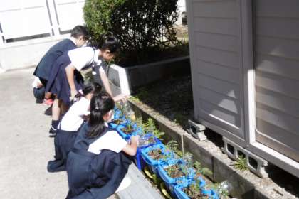1年生は生活科の学習でアサガオ、2年生はミニトマトを育てています。3年生は理科の学習でホウセンカを育てています。子どもたちは登校後、学習の準備をし水やりをすることが日課となっています。双葉から本葉にかわり順調に育っています。