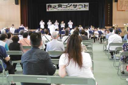 6月24日(日)に森之宮小学校の講堂で第10回森之宮コンサートが開催されました。演奏は「コスモスウィンズ」のみなさんです。懐かしい美空ひばりの曲や子ども向けのディズニーメドレー等、気持ちの安らぐひと時を過ごすことができました。曲当てクイズでは、2年の児童が手を挙げていました。