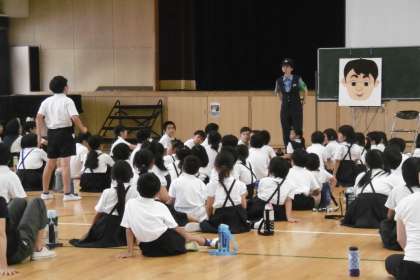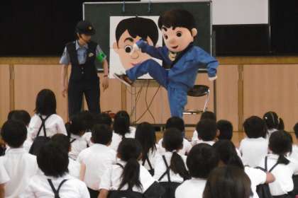 子ども安全防犯教室・地区子ども会 公開日 2018/07/19 更新日 2018/07/19 学校日記 7月18日(水)に城東署の方に来ていただき子ども安全防犯教室を実施しました。着ぐるみを着た「ゆうかいするぞうくん」が子どもたちに、一人では遊ばないこと。知らない人について行かないこと。いつどこでだれと遊ぶのかを家の人に伝えること。など、自分の身を守り楽しい夏休みを過ごすように指導していました。5校時には、地区子ども会を開き夏休みの安全な過ごし方について話し合いました。 いいね(0)