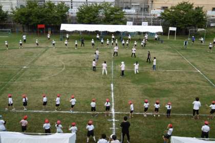 9月26日(水)は午前中天気がよく、全体練習や各学年とも運動場で練習しました。全体練習では、民踊を楽しむ会の皆様に今年度新しく踊る「ダンシングヒーロー」と「バハマ・ママ」を教えていただきました。PTA学級体育委員主催の「玉入れだよ全員集合」では副委員長さんのリハーサルを兼ねて行いました。その他、全校競技の「大玉ころがし」もしました。1校時の晴れ間をぬって、大忙しです。