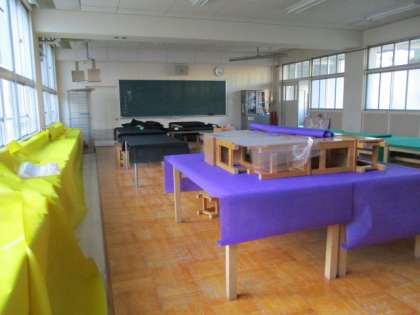 廊下に何かあります。何でしょう。 公開日 2018/11/08 更新日 2018/11/08 学校日記 4階廊下に何かあります。きっと周年行事で使うものでしょう。次の写真は事務の先生によって道路側の掲示物ができました。最後は図工室の様子です。どのように変わるか楽しみにしてください。 いいね(0)