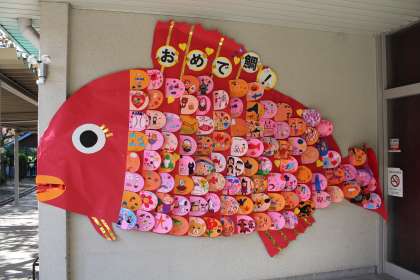式典までの取り組み 公開日 2018/11/20 更新日 2018/11/20 学校日記 学校では40周年行事が子どもたちにとって心に残る行事になるために、友だち俳句づくり(季語なし)や巨大めで鯛をつくり1学期より事前指導に努めてきました。 いいね(0)