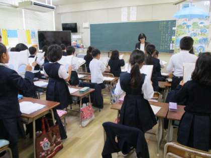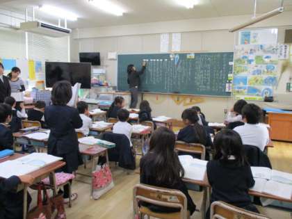 11月27日(火)の5校時1年生はあまんきみこ作の「わたしのかさはそらのいろ」の国語科研究授業を実施しました。研究討議会では、講師の坪田秀雄先生より、きめ細かな指導ができており、張りのある声で音読ができていたことや、視写に慣れていてみんな丁寧に書くことができていること、自分の考えをどんどん書く子どもが多く、友だちの発表を聞きあう態度が身についていること等褒めていただきました。