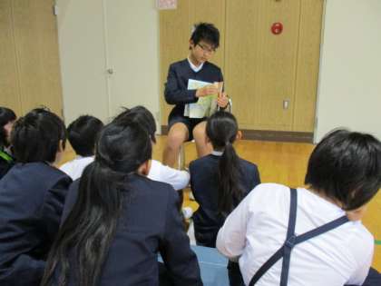 6年絵本の読み聞かせ 公開日 2018/12/17 更新日 2018/12/17 学校日記 水曜日の児童集会では、わくわく班の6年生が班の子どもたちに絵本の読み聞かせをしています。こわい本やおもしろい本、ためになる本など班長さんが選んでいます。最後に感想を発表して終わりです。さて18日〈火)の読書タイムでは、図書委員会のサンタさんから「クリスマスプレゼント絵本の読み聞かせ」を行います。 いいね(0)