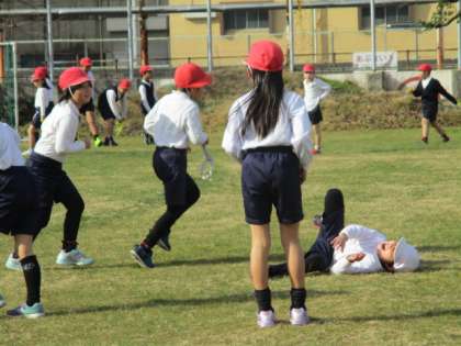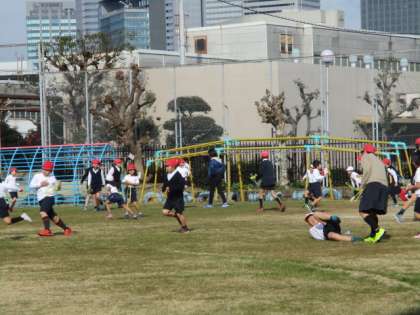 1月11日(金)最後のおに遊び「しっぽとり」ゲームの様子です。みんな楽しんでいることが分かりますね。