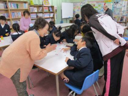 昔遊びの会 公開日 2019/01/31 更新日 2019/01/31 学校日記 1・2年生の生活科の学習で、地域の長寿会の皆様にゲストティーチャーとして来ていただき、あやとりや、こま回し、おはじき、だるま落としなどを教えていただき、ゲームでは味わえない楽しいひと時を過ごしました。長寿会の皆様、早朝よりありがとうございましたうございました。 いいね(0)