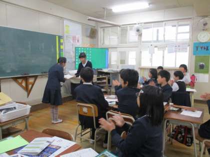 児童会のあいさつ運動 公開日 2019/02/04 更新日 2019/02/04 学校日記 1月28日(月)より児童会であいさつ運動を行いました。児童会の子どもたちは「寒さに負けない声であいさつできました。」や「元気になれるようなあいさつができました。」など、給食時間の最後の3分間を利用して、校内放送後、毎日各学級1名を選び賞状を渡していました。 いいね(0)