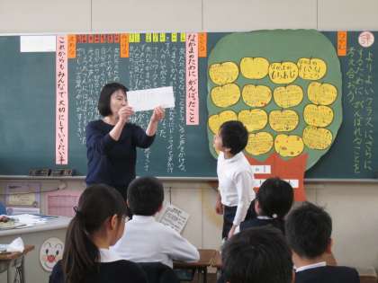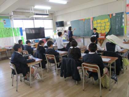 4年学級活動研究授業 公開日 2019/02/28 更新日 2019/02/28 学校日記 2月26日(火)の5校時に「4の1の「ええとこ」を大事にして進級しよう」という題材で学級活動の研究授業を実施しました。城東区の先生方の研修として行いました。授業後の協議会では、子どもたちが次々と自分の考えや思いを発表している姿に驚いていました。また、廊下階段の掲示物や整備された図書室を見られて、その素晴らしさにも驚いていました。 いいね(0)
