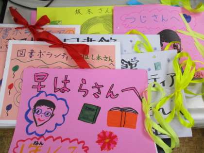 3月13日(水)に本年度最終の児童集会を行いました。内容は図書館ボランティアさんにお礼の会です。全校児童でお礼の手紙を書き代表児童が読んだり渡したりしました。ボランティアさんからは、「みんなが本を好きになってほしいから読み聞かせを続けています。」や「図書室に来てほしいから本の整理や貸し出しを手伝っています。」などのことばがあり、本当に頭が下がるおもいです。最後はわくわく班で集まり6年生にお礼のことばを伝えました。