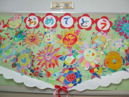 6年生の卒業をお祝いして、各学年「卒業おめでとう」掲示板を作りました。