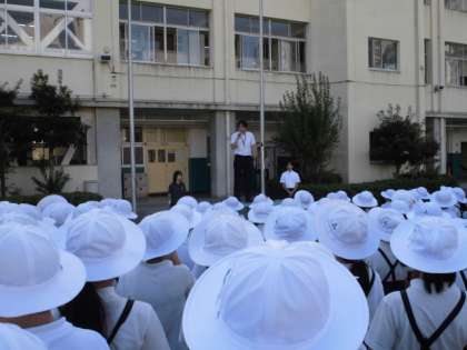 全校朝会 公開日 2025/09/01 更新日 2025/09/01 学校日記 2学期初めての全校朝会がありました。今日は防災の日なので、教頭先生から災害が起きた時の話をしてもらいました。そのほかにも、学校生活のきまりやインターンシップ生の紹介があり、真剣に話を聞いていました。 いいね(0) 1年 2年 3年 4年 5年 6年
