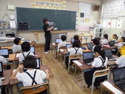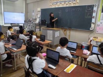 1年生のパソコンがChromeBookに変わりました。子どもたちはログインの仕方や「こころの天気」の入れ方を学習しました。「こころの天気」は、朝と帰りの子どもたちの気持ちを晴、曇り、雨、雷の4つのアイコンで表現してもらい、先生たちに今の気持ちを伝えるものです。1年生は初めてのアイコン選びを楽しんでいました。
