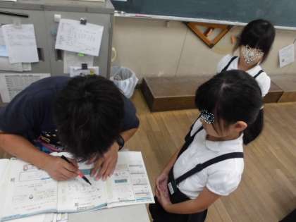 学習の様子 公開日 2025/09/09 更新日 2025/09/09 学校日記 2年2組でも算数のまとめをしていました。筆算のまちがいを見つけたり、計算したりして、集中して取り組んでいました。 いいね(0) 2年
