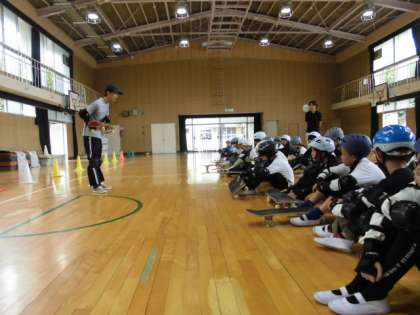 6年 スケボー体験 公開日 2025/09/11 更新日 2025/09/11 学校日記 今日は6年生のスケボー体験がありました。1学期にXゲーム参観をしていたので、楽しみにしている子がたくさんいました。 初めに準備体操をして、「乗る」体験をしました。 いいね(0) 6年