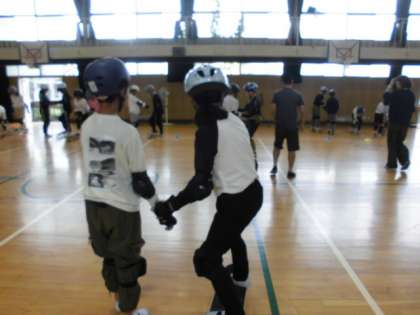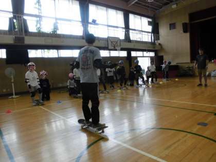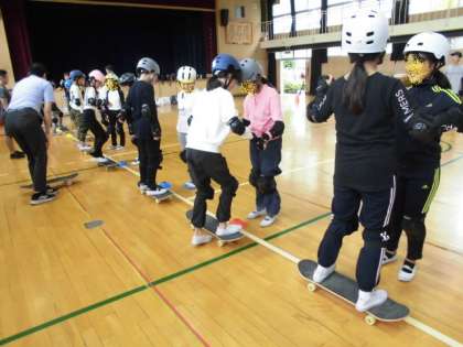 6年 スケボー体験 公開日 2025/09/11 更新日 2025/09/11 学校日記 その後2人1組になって前に進む練習をしました。最初は恐る恐る乗っていましたが、慣れてくると手を放して進む子が増えていました。 いいね(0) 6年