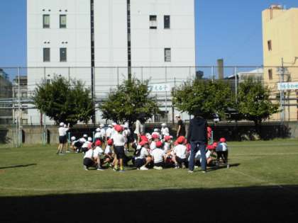 4年生は団体競技の練習をしていました。初めての競技だったので、慣れない様子で練習していました。