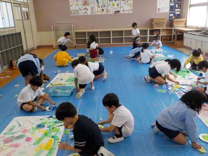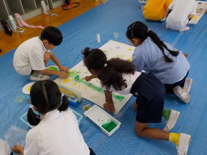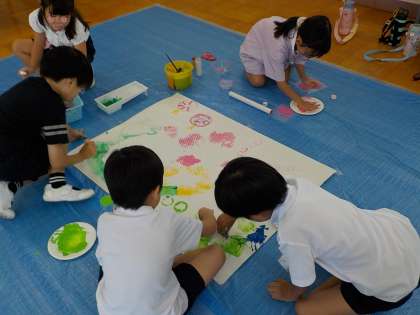 1年生は図工で「スタンプぺったん」をしていました。身の回りにある様々なものを使って、スタンプをしていました。