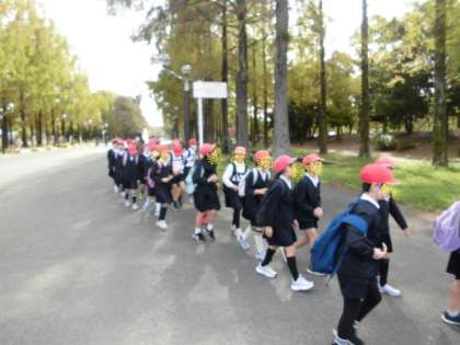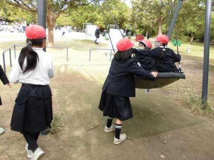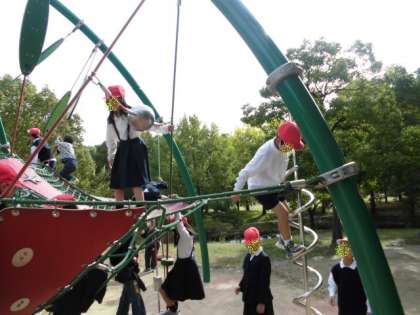 今日は、3・4年生で鶴見緑地公園に行きました。到着後、公園でのルールを確認して遊具で遊びました。