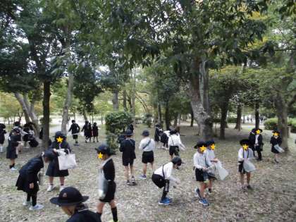 2年 秋見つけ 公開日 2025/11/05 更新日 2025/11/05 学校日記 2年生は、秋を見つけに大阪城公園へ行きました。色の変わった落ち葉やドングリなど、たくさんの秋を見つけて拾っていました。集めた木の実や葉っぱは、生活科で使う予定です。 いいね(0) 2年