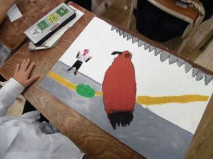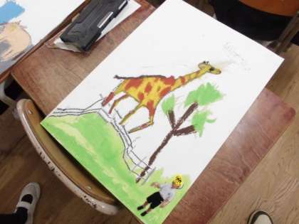学習の様子 公開日 2025/11/12 更新日 2025/11/12 学校日記 1年生は、動物の絵を描いていました。遠足で行った天王寺動物園を思い出して、好きな動物の絵を描きました。絵の中には、写真で作った小さな自分も登場します。 いいね(0) 1年