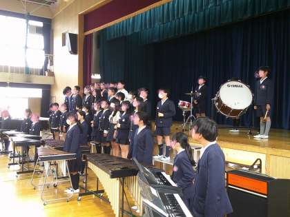 今日は音楽会の準備がありました。楽器を講堂に移して場所の確認をしました。本番一週間前になり、気持ちを高めて練習をしています。