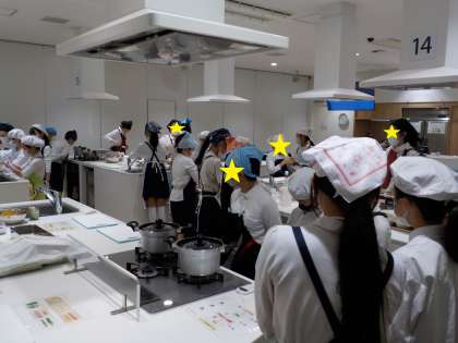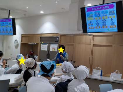 5年生はハグミュージアムに行きました。献立は、ごはん、みそ汁、野菜炒め、かつお節のふりかけです。始めに調理方法や気を付けることを聞いて、実習スタートです!