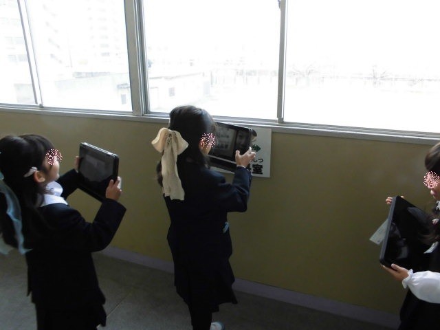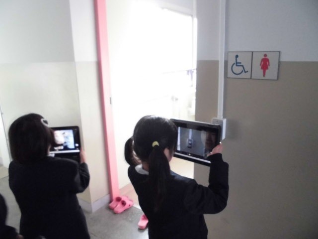 1年生は、人権学習の中でユニバーサルデザインについて勉強していました。身近にある「多くの人が使いやすいように最初から設計されたもの」を探していました。学校の中にもたくさんあったので、パソコンで写真を撮りました。これから自分の見つけたユニバーサルデザインを発表します。