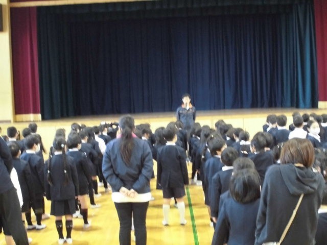 今日は全校集会がありました。毎年この時期は「阪神淡路大震災」など震災の話をしています。