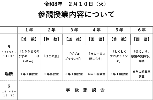 2月10日(火)の参観内容です。当日受付にも掲示させていただきます。