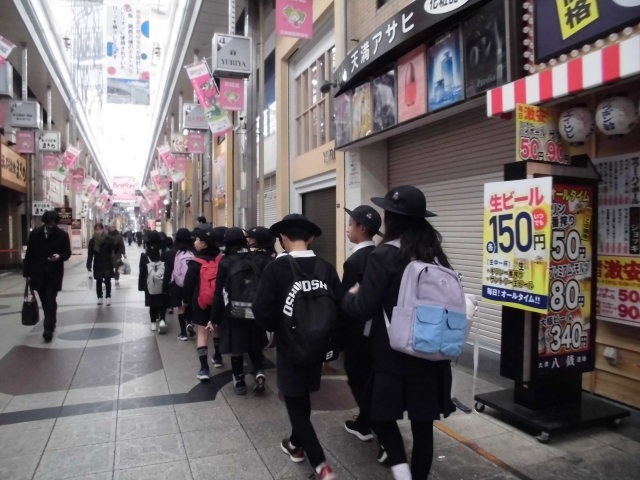 天神橋筋商店街・くらしの今昔館見学 公開日 2026/02/12 更新日 2026/02/12 3年 今日は3年生がくらしの今昔館見学に行きました。向かう途中で、社会科で学習していた商店街の見学もしました。魅力的な商品が店頭に並べられていたのでついついつられて足を止めていました。今昔館ではスタッフさんからの説明やたくさんの資料があり、楽しみながら学習を深めていました。 +7 いいね(0) 1年 2年 3年 4年 5年 6年 学校行事 PTA行事