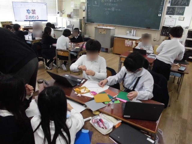 3年生は、お祝い集会に向けて、卒業生へのメッセージを作っていました。