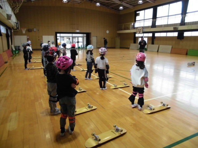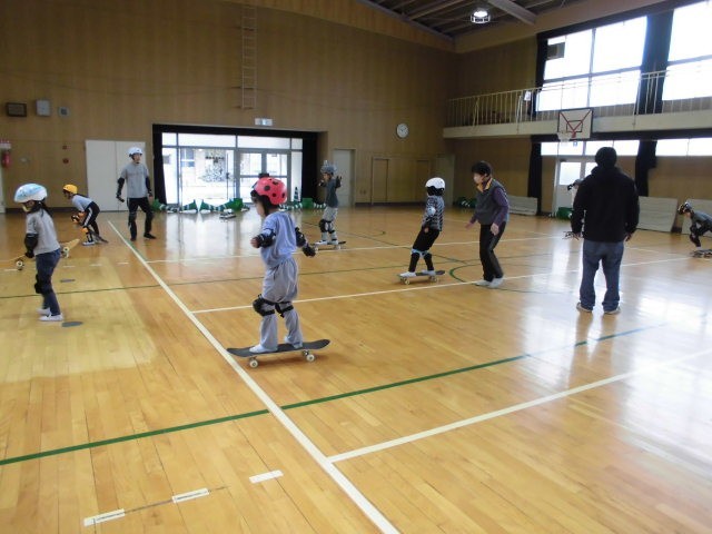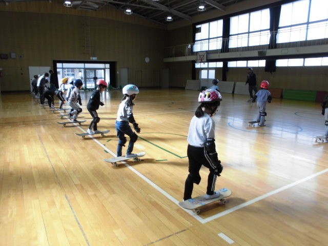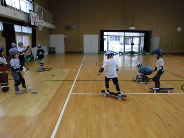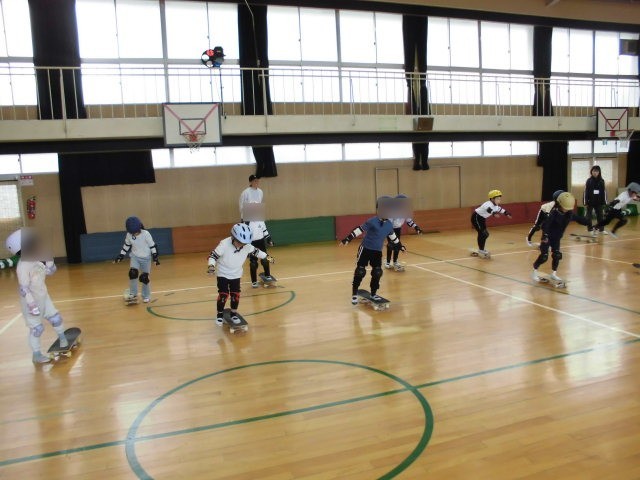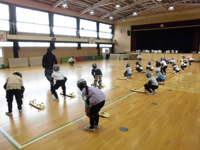 2年生を対象に、ムラサキスポーツ様のご協力のもとスケートボード体験学習を行いました。プロの講師の方々にご指導いただき、子どもたちは安全面や正しい知識を学びながら、体幹を使った動きや基本姿勢を身につけていきました。