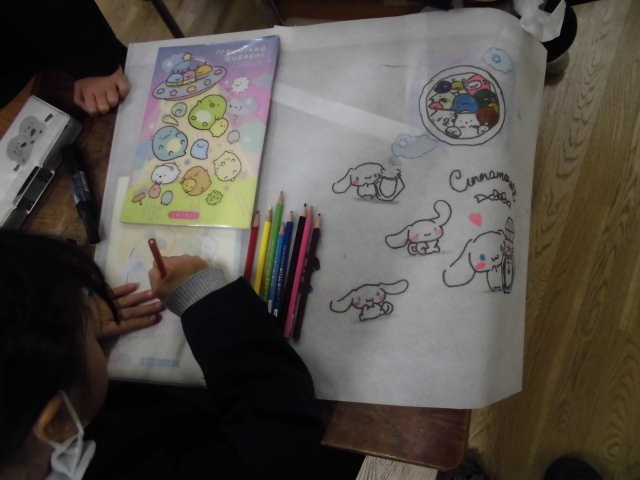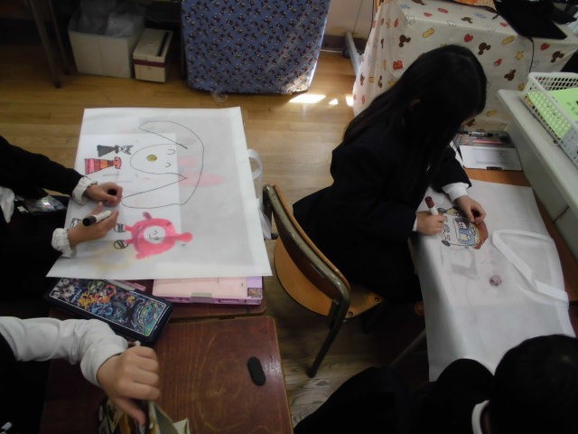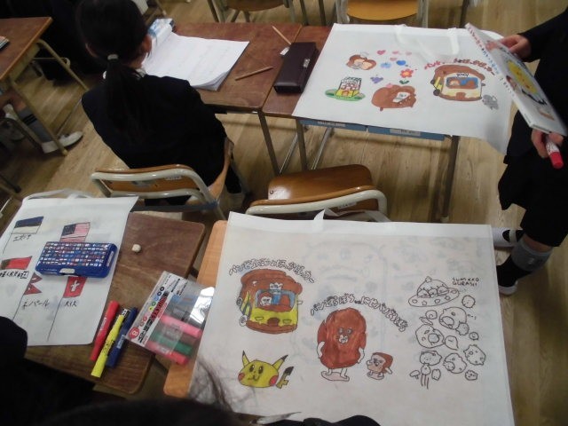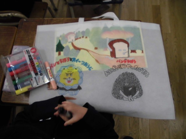 学習の様子 公開日 2026/03/12 更新日 2026/03/12 1年 1年生は、1年間の作品を持って帰るための作品袋を作っていました。すきなキャラクターや国旗など、思い思いの作品袋に仕上げていました。 +1 いいね(0) 1年
