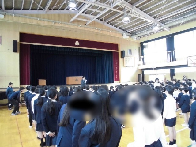 1学期最初の全校朝会がありました。