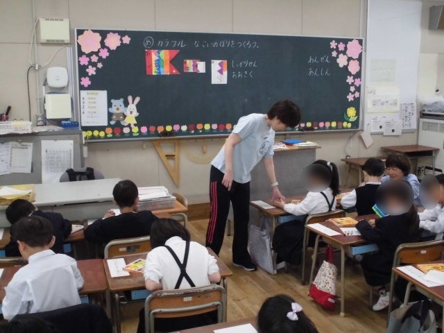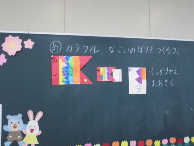 1年生は図工の授業で、カラフルな鯉のぼりを作っていました。