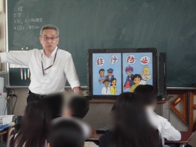3時間目に元警察官の方が来校して非行防止の観点で話をいただきました。