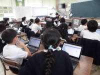 6年生の理科では、児童用端末を使って振り返りをしていました。プログラミングでは、プロンプトを何度もくり返し修正して成功させていました。