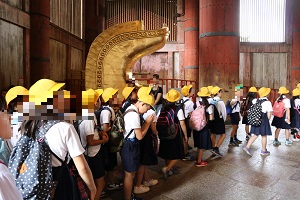 子どもたちは町にいる鹿に触ったり、大仏を見上げたり、仏像の名前を一生懸命読んだり、普段できない体験をすることができました。