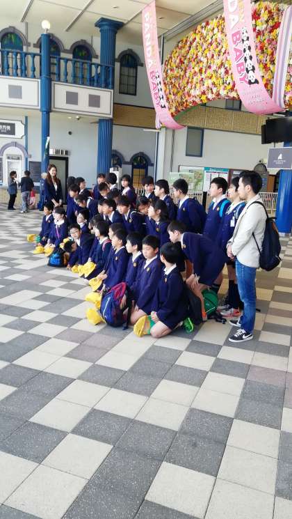 予定よりはやく現地到着です。集合写真をとり入場しました。