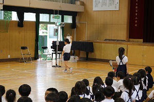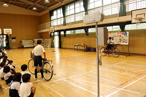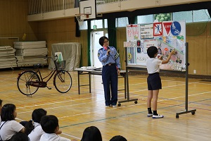 交通安全指導でした。低学年は歩行のしかた、高学年は自転車の正しい乗り方とルールを城東警察署の方から教えてもらいました。こんなときどうする?という質問に対しても手を挙げて発言し、真剣にお話をきいていました。