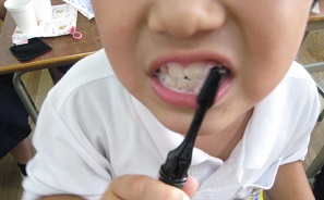 今年から各学年ごとに「歯みがき週間」を実施しています。「歯みがき週間」初めには、保健室の先生から歯垢を染め出してもらい、歯みがきの大切さを教わります。今週は3年生です。一生懸命に磨きました。