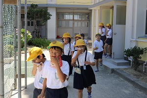 今日は、火災を想定した避難訓練を行いました。各学級では、「おさない・はしらない・しゃべらない・あわてない・はなれない」という避難時の心構えを確認したり、煙を吸わないための工夫をしたりして訓練に臨みました。