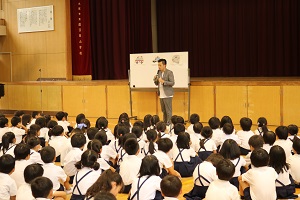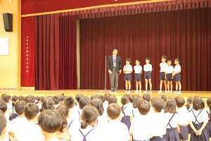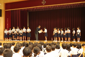 終業式でした。表彰式のあとは、生活指導からの夏休みの過ごし方と、乗ってはいけない車の説明がありました。二学期も、子ども達の元気な姿がみられることを楽しみにしています。