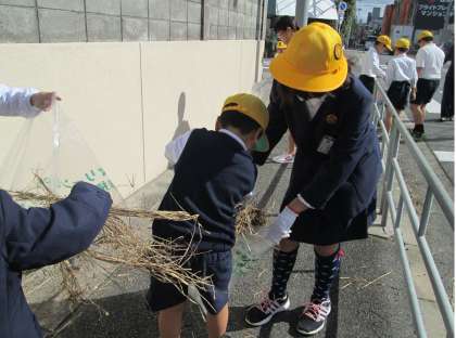 たばこのすいがらや落ち葉などたくさんのごみを拾い、「こんなにごみあった!」と袋をいっぱいにして学校へ帰ってきました。