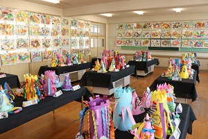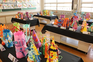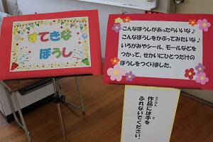 「すてきなぼうし」カラフルなぼうしがたくさんありました。とてもかわいい作品です。