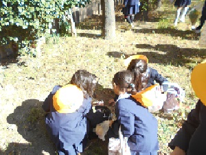 11月20日(水)、1年生は東今福公園(ジャンボ公園)に秋さがしに行きました。どんぐりのぼうしを拾ったり、顔の大きさ程の大きな落ち葉や、きれいな落ち葉を拾ったりしました。その後、滑り台やブランコなどで遊びました。「とっても楽しかった!!」と感想を言っていました。