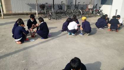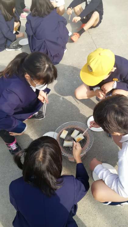 社会科で学習した昔の道具を使う体験学習をしました。七輪で火を起こし、お持ちを焼きました。昔の道具につまっている知恵に気づいたよい体験になりました。