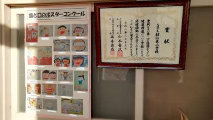 歯と口の健康の保持増進に関わって学校に表彰状をいただきました。また、歯と口のポスターコンクールや、標語コンクールで、入選した児童の表彰がありました。