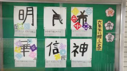 今年の卒業式にむけていろんな学年からのメッセージが掲示されています。