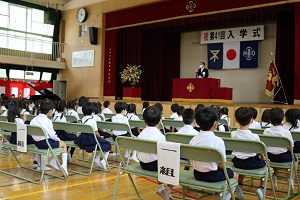 入学式をしました。式が終わってからは、保護者の方には前半と後半にわかれて各教室で学習参観をし、待っている間は講堂で学校紹介のスライドショーをみてもらいました。